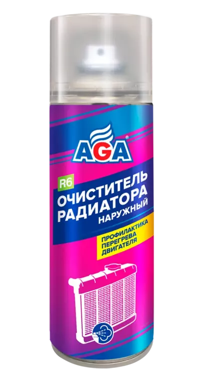 Автомобильный радиатор предназначен для снижения температуры охлаждающей жидкости во время движения автомобиля. От его работы зависит стабильность работы силового агрегата. Процесс охлаждения выглядит следующим образом – антифриз под давлением двигается по трубкам радиатора, которые обдуваются воздухом. В процессе эксплуатации соты забиваются дорожной пылью и насекомыми, что ухудшает охлаждение. Чтобы его восстановить надо очистить соты. Делается это сжатым воздухом в автосервисе или специальной автохимией в домашних условиях. Очиститель радиатора наружный AGA (AGA706R) 520мл — это эффективное средство для удаления любых загрязнений с поверхности радиатора. После его применения соты становятся чистыми, что восстанавливает теплоотводящие свойства. Продукт можно применять на любых теплообменниках, включая интеркуллер, масляный радиатор АКПП, охладитель кондиционера, отопитель салона. Чтобы избежать скопления грязи и ухудшения охлаждения его необходимо использовать каждые 20 тыс. км пробега.