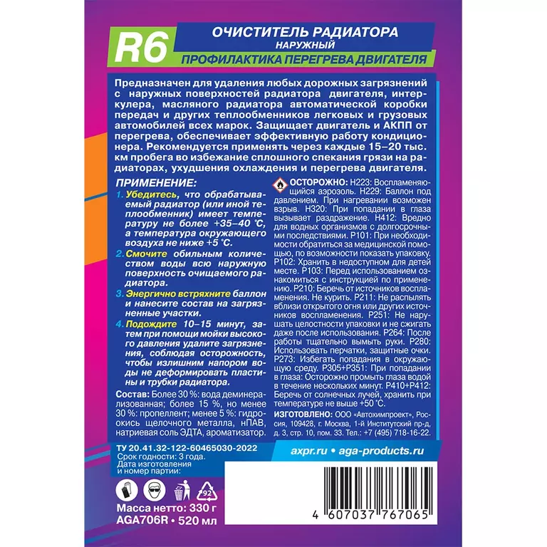 Очиститель радиатора наружный AGA (AGA706R) 520мл